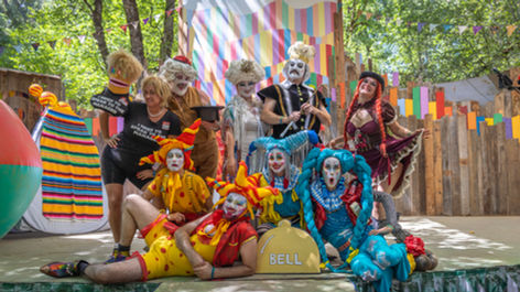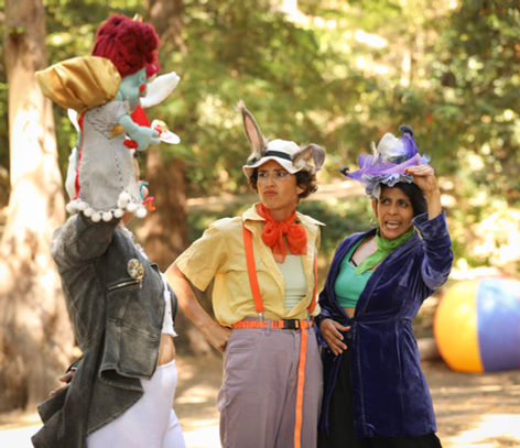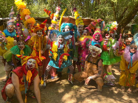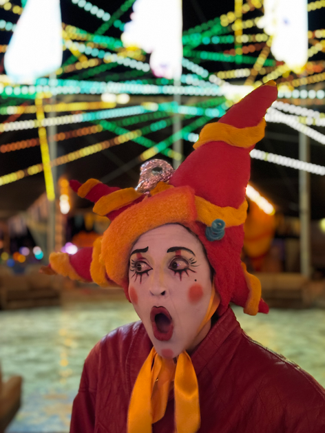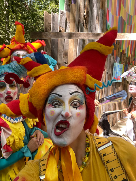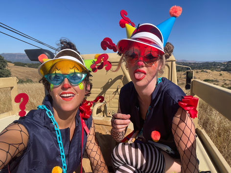 I began performing as a character and as part of groups in 2024. Since then, I’ve had the pleasure of developing clown pieces for Fou Fou Ha, San Francisco's premiere cartoon performance ensemble, at the Edwardian Ball, Oregon Country Fair, Burning Man, and for private events. I’ve performed as a clown, character, puppeteer, and mime with Scott Levkoff, Edna Mira Raia, Catalyst Arts, and Circosphere. I appeared in my first full-length clown show, Spacesuckers from Outer Space, as part of Church of Clown’s first company production. In September 2025, I joined Pinecones and Portals, Juliana Frick’s hiking theatre company based in Berkeley, California, to play the Caterpillar and March Hare in the Spanish-language children’s play Alicia en el Camino de las Maravillas.