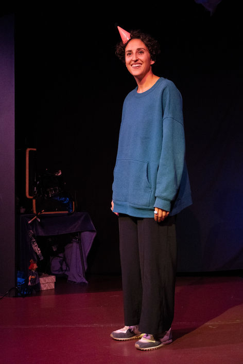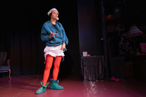 Gra is represents the outward presenting "high status" character we project into the world and the "low status" character that lives within. Constantly grappling with contradictions, she tries to understand the distinctions between similar yet different ideas and contrasting extremes: good / bad, desire / necessity, and art / craft. Gra tries to understand the world around her, using physical comedy, experimental audience interaction and improv to explore her ideas. Since we are all in existing in a place of existential crisis - this play between the mask we present and the truths that come from our inner monologue.